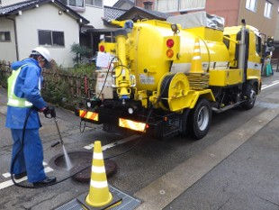 汚泥は汚泥吸引車で吸い取り、産業廃棄物として処分します。
